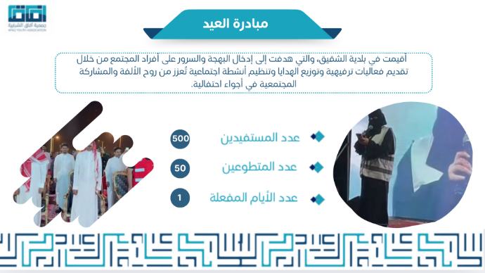 جمعية آفاق الشبابية تعمل على تمكين الشباب وتنمية قدراتهم، وإطلاق طاقاتهم الإبداعية بما يتماشى مع رؤية المملكة 2030، من خلال منظومة عمل احترافية وشراكات فاعلة تسهم في تحقيق أثر مستدام في المجتمع.